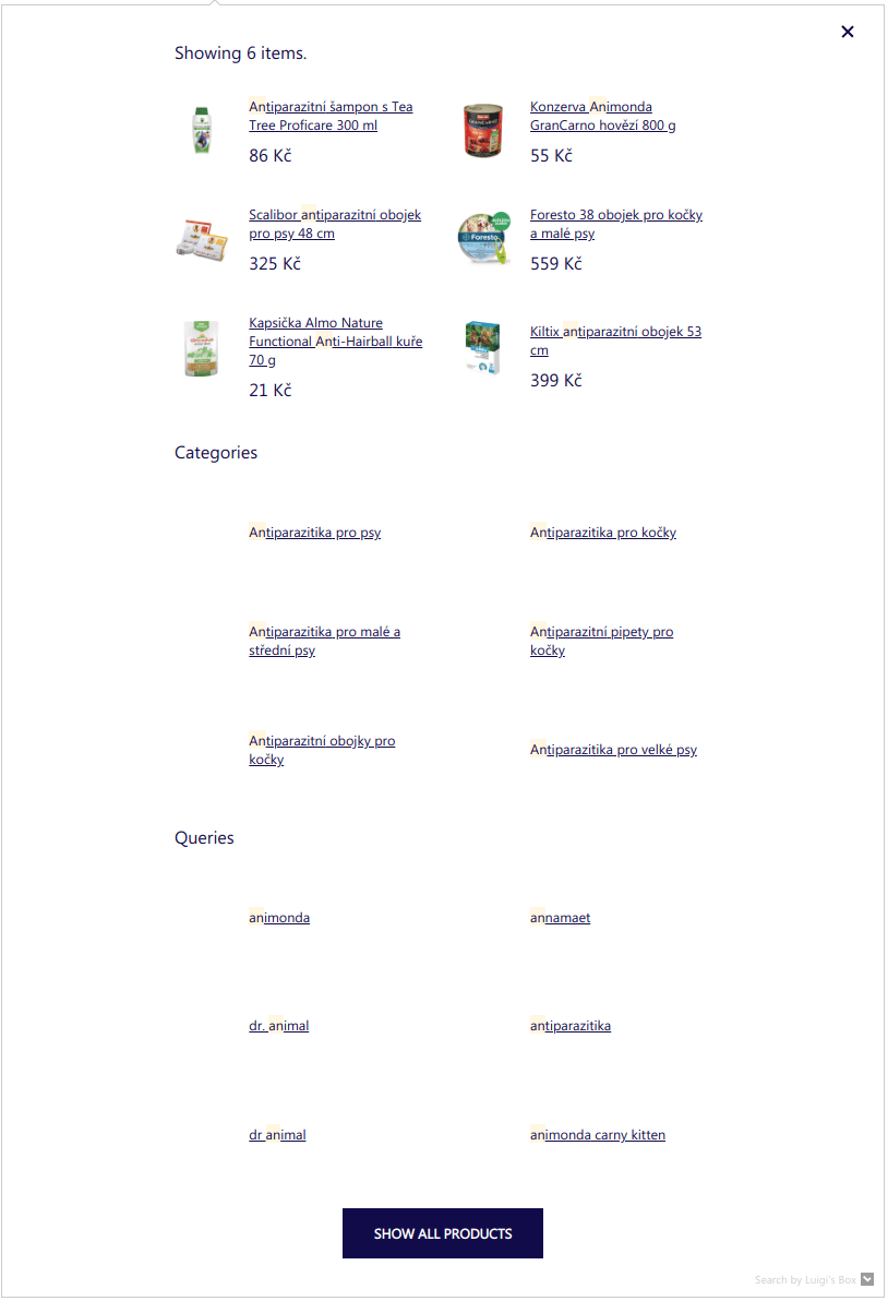 Luigi's Box Autocomplete is a feature designed to show customers relevant, real-time results from their very first keystroke. The system is highly optimized for speed (latency), providing an instant and seamless user experience. It learns from user behavior through analytics integration to continuously improve the relevance of its suggestions. To accommodate different development needs, Autocomplete can be integrated in two primary ways. You can use Autocomplete.js, a comprehensive JavaScript widget that handles all functionality out of the box, or the core Autocomplete API for a fully custom implementation.